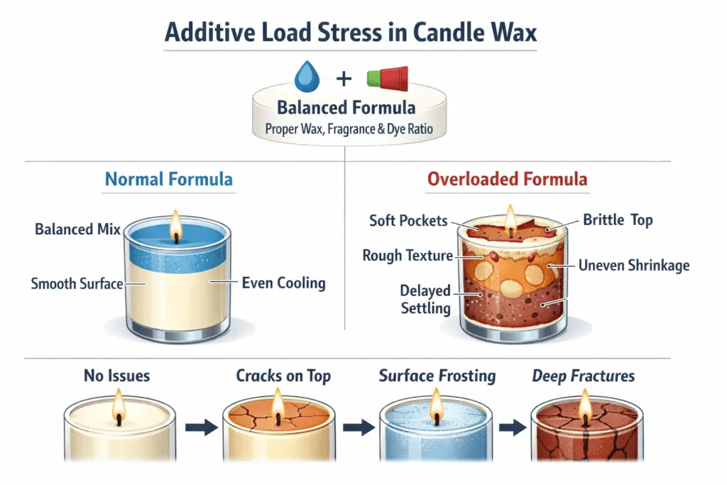 That is why a crack is not always just a pouring mistake. Sometimes the real issue is that the wax was asked to do a job it is not designed to handle. Matching the blend to the candle type, container size, and additive load usually improves both appearance and consistency.